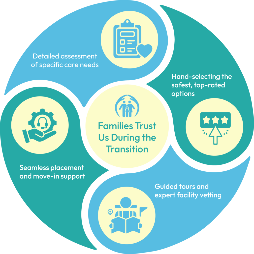 We ensure everything is well overlooked, from clinical care to the social environment of the facility. Our senior care placement and consulting services manage the logistics from start to finish, removing the guesswork and the stress. Trust us to secure a transition that prioritizes their dignity and well-being.